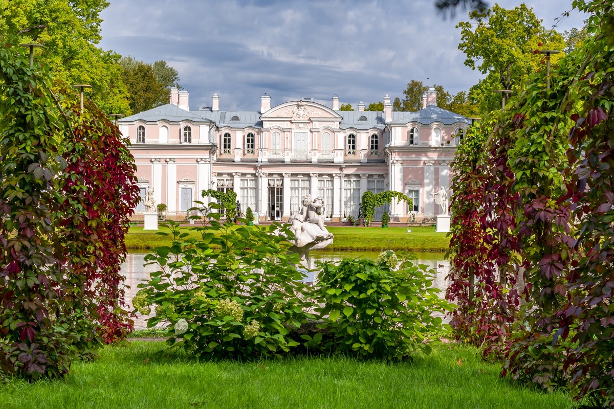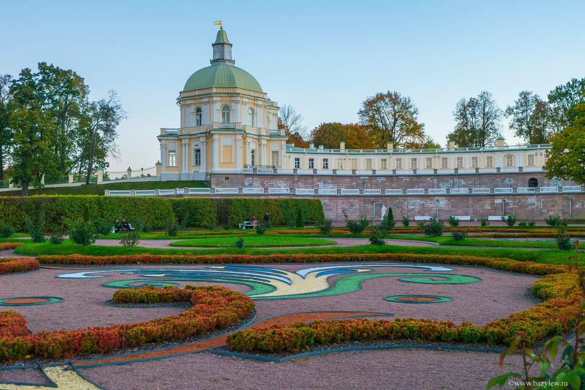 Дворец, построенный для императрицы Екатерины II как «Собственная дача». Китайским дворцом его стали называть потому, что в его интерьерах были использованы китайские мотивы, и здесь же разместились богатые коллекции предметов, выполненных мастерами из Китая. В нём нет ни одной повторяющей другую комнаты, а паркет 18 века выполнен по рисункам Ринальди. Шедевром интерьерного искусства по праву считается Стеклярусный кабинет в Китайском дворце. Его стены украшают 12 панно в резных золочёных рамах, на которых по стеклярусной основе шелком вышиты цветы, пейзажи, сказочные птицы — выглядит всё это фантастически!