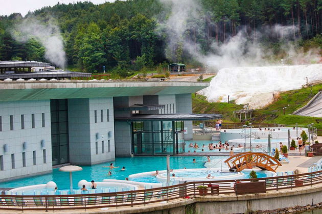 Бассейны с лечебной водой для принятия ванн, джакузи, бассейны с развлекательными эффектами, водная горка и детские бассейны предоставляют возможность прекрасно провести здесь время как для людей более старшего возраста, так и для молодёжи.