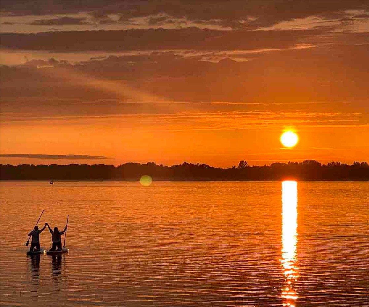 Нижний Новгород — столица закатов. А поскольку город находится в уникальном месте, на слиянии Оки и Волги, здесь появилась традиция встречать закат на воде. Хотите завершить день катанием на сапе? Виды на заходящее солнце подарят массу эмоций, а гребля по волнам поможет перезагрузиться. С нас — яркой фотоотчёт о вашем приключении!