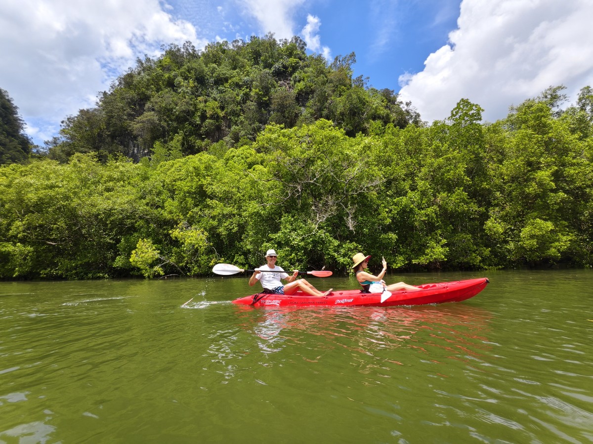 Далее — каякинг по мангровому лесу. Маршрут проложен по узким каналам и естественным тоннелям среди корней деревьев. Здесь особенно тихо, слышны только звуки воды, птиц и ветра в листве. Управлять каяком можно самостоятельно или с помощью тайского проводника — всё зависит от ваших предпочтений.