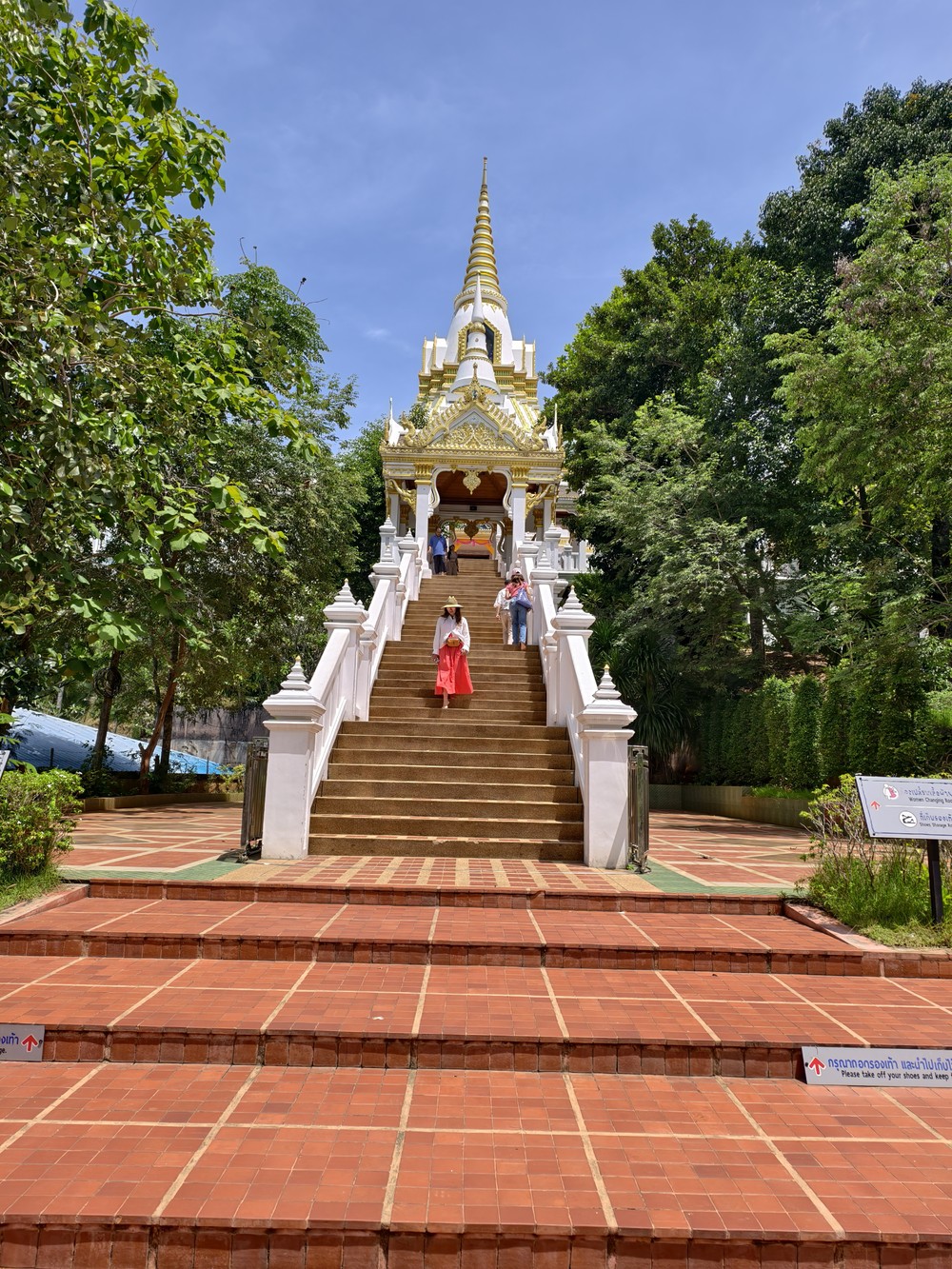 Первая остановкой станет буддийский храм Wat Bang Thong — один из самых впечатляющих на юге страны. Главная ступа высотой более 80 метров покрыта золотыми рельефами, а территорию украшают скульптуры мифических существ. Здесь можно спокойно прогуляться, сделать красивые фото и познакомиться с буддийской символикой и традициями.