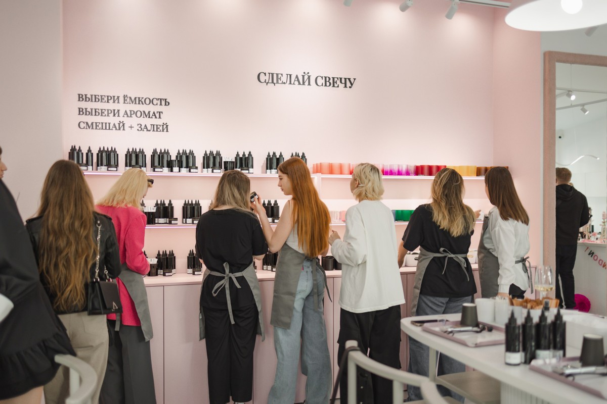 В нашем красивом кендлбаре вы сделаете свечу со своим настроением. Послушаете готовые ароматы (в меню большой выбор!) или смешаете новый, который передаст ваша личная Москва. Оформите этикетку и узнаете секреты горения свечи. А также поработаете с соевым воском — натуральным продуктом, который не выделяет канцерогены при горении.