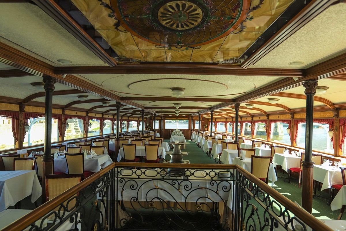 Организация 0, обслуживание официантов 0, они тебя просто не замечают-если хочешь что-то заказать нужно идти к бару, еда отвратительная-как в турецком отеле с минус одной звездой. Более того, ее на всех не хватило…Столик (с доплатой у окна), на самом проходе. Испортили все настроение в такой прекрасный и солнечный день. Две звезды ставлю за музыку и игру музыкантов, иначе поставила бы 0. Лучше берите просто прогулку по Дунаю днём, чтобы посмотреть на город- без вот этого треша!