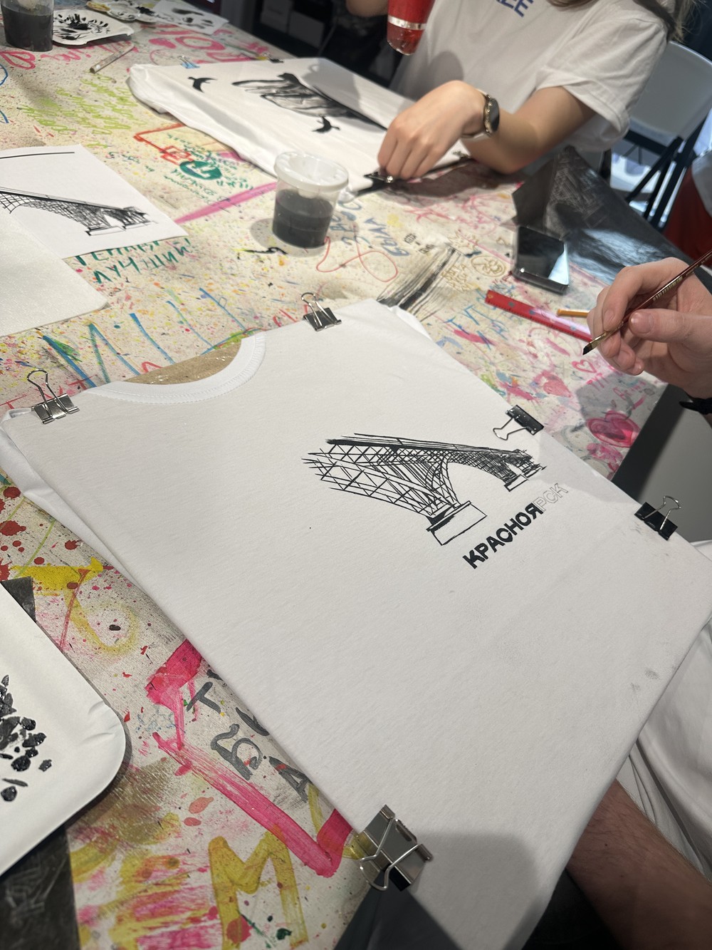 - Футболка (100% хлопок) или шоппер (вы можете принести изделие с собой, в нём должно быть не меньше 80% хлопка, стоимость мастер-класса в этом случае — 2100 ₽)