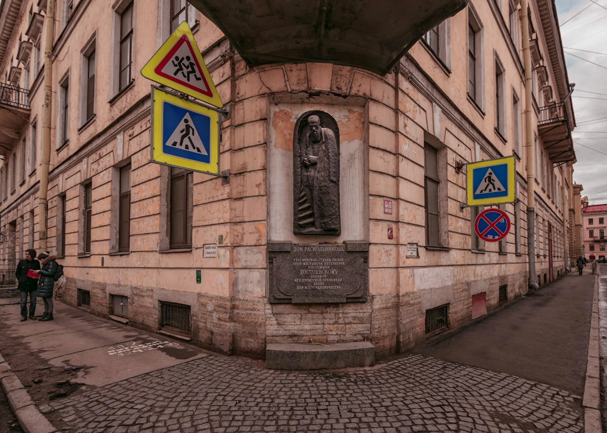 - Маршрут, по которому шёл Раскольников: вниз по Столярному мимо дома Достоевского до дома № 18/63 по каналу Грибоедова