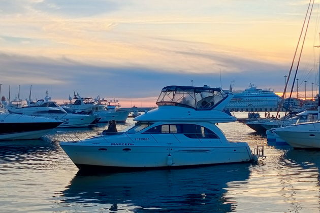 К вашим услугам роскошная моторная яхта — самое большое судно из прогулочных и лучшее, без преувеличения, в нашем порту. Вы отправитесь в морское путешествие вдоль берега Сочи. Наш опытный капитан прокатит вас до Кавказских гор. Вдохните чистый морской воздух и скажите себе: жизнь прекрасна!