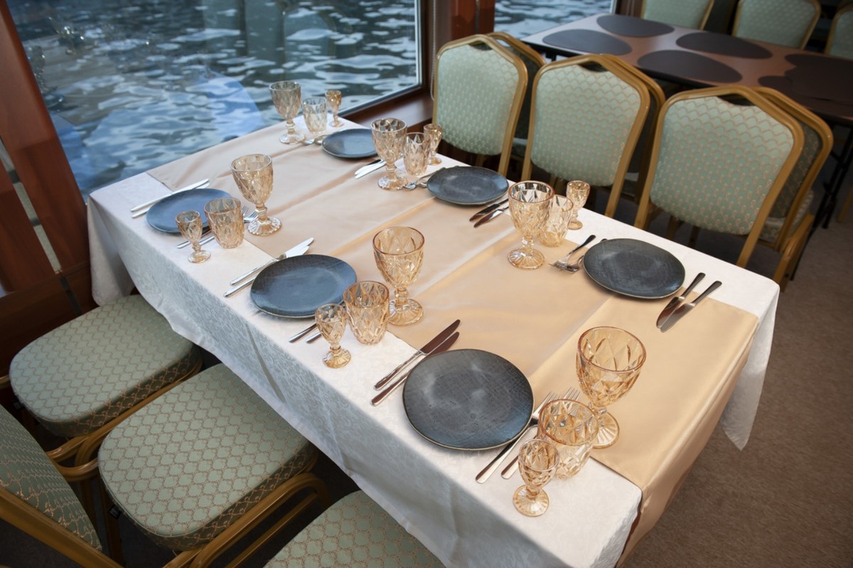 - На борт теплохода запрещается проносить свои продукты питания и безалкогольные напитки. Можно приносить свой алкоголь, кроме пива, из расчёта 1 бутылка крепкого алкоголя на 2 персоны (при наличии чека из магазина). Рекомендуем позаботиться о посуде для своего алкоголя, так как на корабле она не предоставляется.