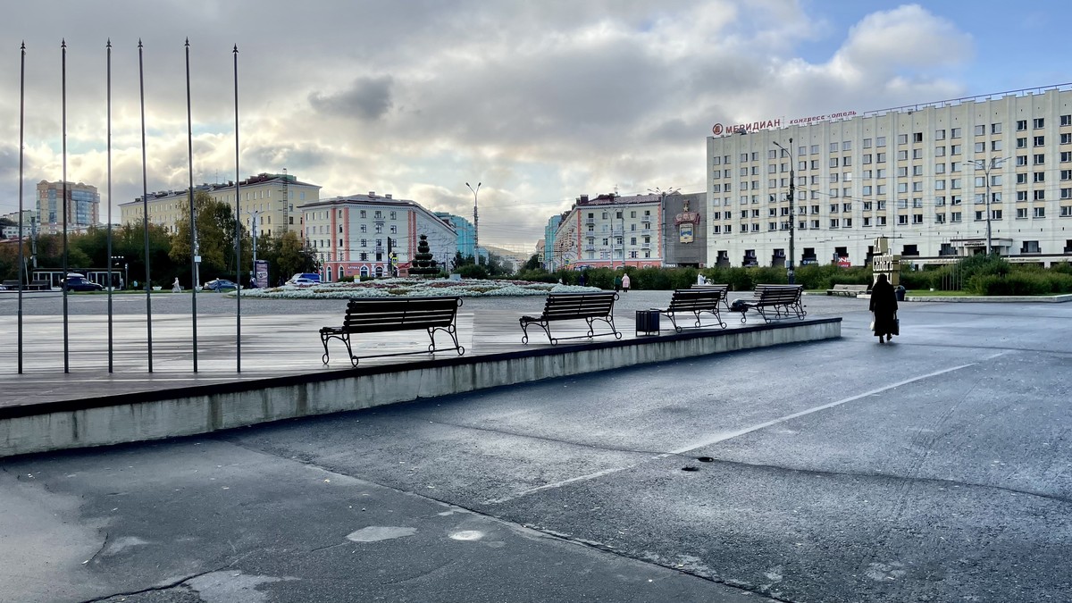- Посмотрим на центральную площадь и самое высокое здание в Мурманске