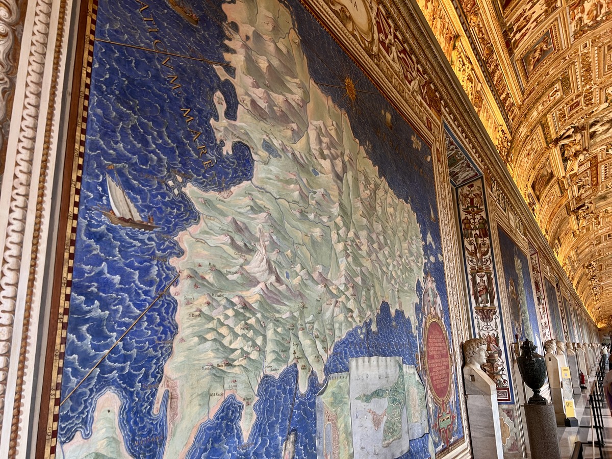 Зал географических карт. Одна из самых протяжённых галерей Ватикана. Здесь находится крупнейшая серия фресок с картами итальянских регионов 16 века.