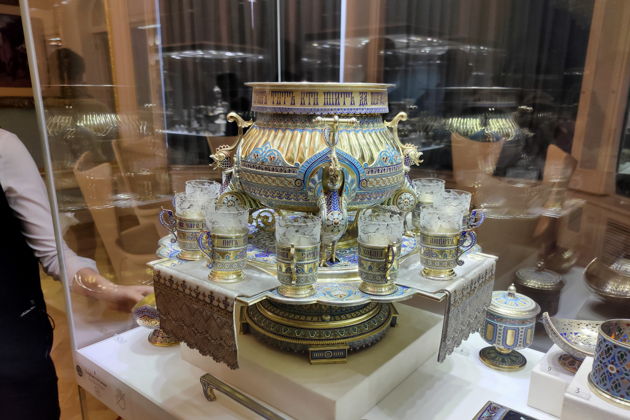 Мы увидим работы мастеров в разных направлениях ювелирного дела. Каждый найдет для себя что-то особенное в этом небольшом музее, до края наполненном разными проявлениями одного и того же вида искусства. Вы увидите столовое подарочное серебро, изделия покрытые эмалью гильоше и перегородчатой эмалью, императорские подарки, отделанные драгоценными металлами и камнями и, конечно же, самую большую коллекцию пасхальных яиц Фаберже в мире.