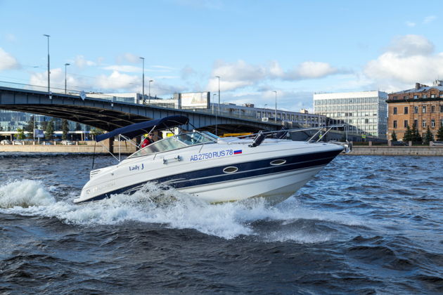 Каютная яхта Вальяжная — это премиальных отдых со всеми удобствами: кожаные диваны, стол, туалет в полный рост, что очень важно при длительных прогулках, мягкий матрас на носовой части, куда можно эффектно выйти, музыкальная система.