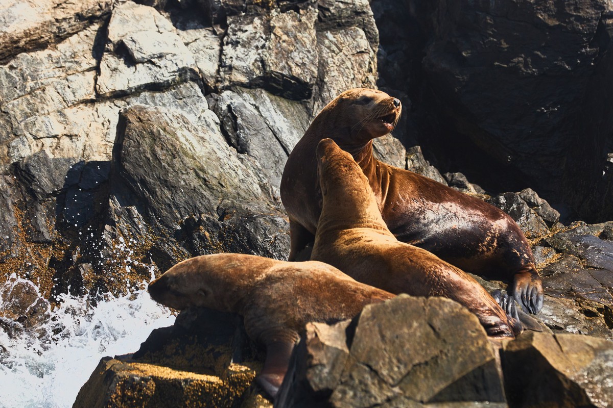 Кекуры Пять пальцев — живописные скалы, где обитают сивучи и ларги. Это их дом. Кто-то плавает, кто-то ныряет за добычей, кто-то просто загорает и с интересом смотрит на людей. Помните: это дикие животные. Мы не вмешиваемся в их жизнь, а просто наблюдаем и ждём удачных кадров.
