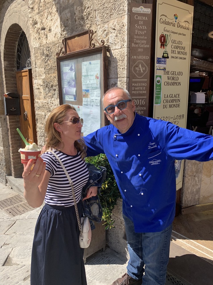 На одной из центральных площадей города мы зайдем в гости к синьору Дондоли — знаменитому тосканскому мороженщику. Он неоднократно побеждал в европейском профессиональном конкурсе: попробовав его удивительные лакомства, вы поймёте причину. Рикотта с черникой, шафран и кедровый орех, красный грейпфрут и шампанское, сорбет из вина — выбирайте свой любимый вкус!