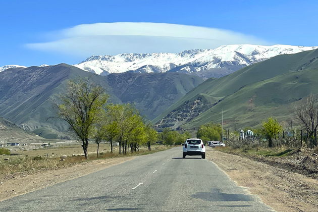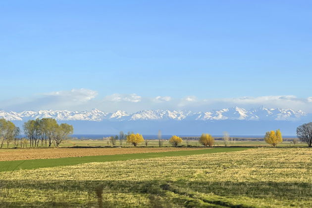 В тур мы отправляемся из города Бишкек, по живописной дороге вдоль границы с Казахстаном. По пути будут открываться потрясающие виды на горные хребты Тянь-Шаня по обе стороны от дороги, органично сочетающиеся с панорамой бескрайних полей и холмов перед ними.