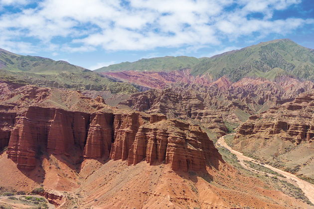 Каньоны Конорчек Это уникальная система каньонов, спрятанная в самом сердце Киргизского хребта. Представляет собой запутанную систему каньонов, петляющих среди глиняных скал. Эти каньоны образовывались десятками тысяч лет и имеют поразительное сходство с «Гранд каньоном» расположенном в США. Добраться до самой системы каньонов можно только через русло пересохшей древней реки, которая буквально «проточила» путь к ним из ущелья.