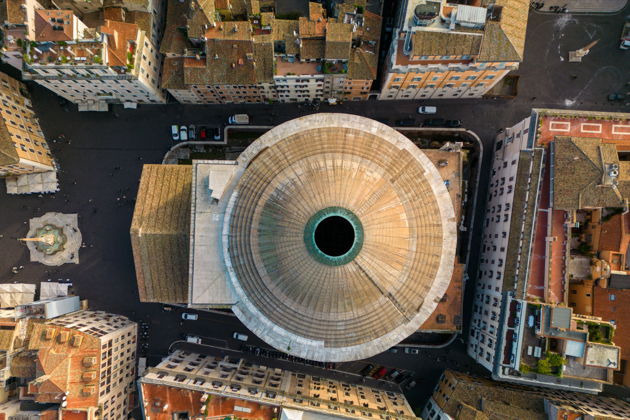 Пройдите через портик с розовыми гранитными колоннами из Египта и познакомьтесь с Рафаэлем Санти, похороненным здесь вместе с другими художниками эпохи Возрождения. Услышьте голос королевы Маргариты и других монархов, покоящихся в Пантеоне. Особое впечатление оставит рассказ о ежегодном дожде из лепестков красных роз через окулюс в день Пятидесятницы.