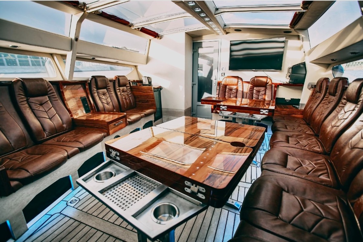 - На борту катера есть тент от дождя и ветра, тёплые пледы, бокалы, по желанию можно включить музыку
