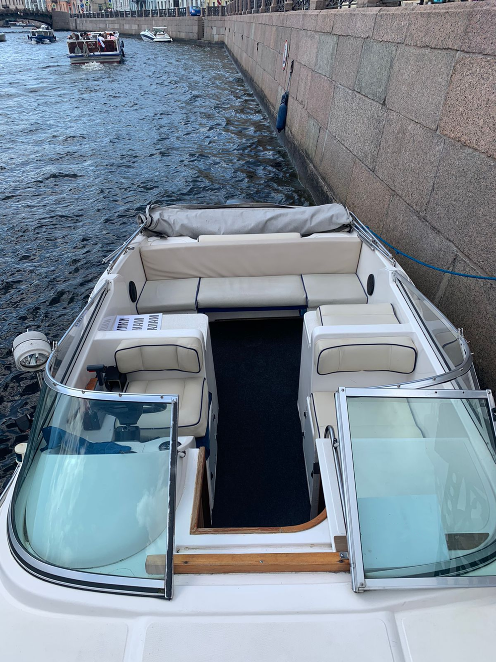 - Запрещено вставать ногами на сиденье, брать на борт сладкие продукты (мороженое, арбузы, семечки и пр.) и продукты, которые могут испачкать салон катера (например, красное вино)
