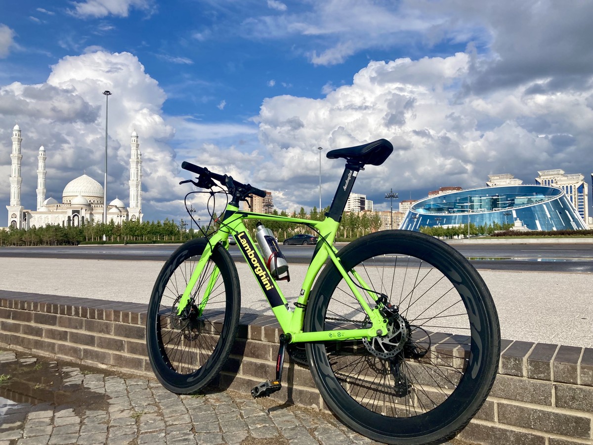 Не просто на велосипеде, а на шоссере! Полный восторг, получил опыт езды на таком монстре:) Отличный маршрут, увидел очень много, гораздо больше чем на обычной обзорной экскурсии. Виктор - очень интересный собеседник, рассказал много интересного об Астане и Казахстане.