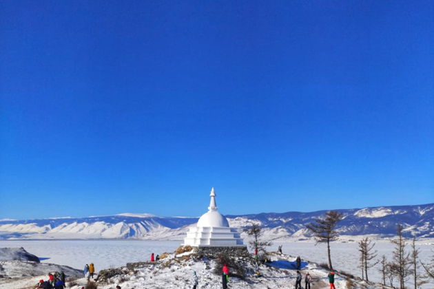 С утра едем на остров Огой. Наверняка вы уже поняли, что в походе по льду Байкала мы не только ходим, но и ездим на машине! Каждый год в этих местах прокладывают зимнюю трассу для движения транспорта, делают специальную разметку и наносят светоотражающую краску. За безопасностью дороги лично наблюдает МЧС. Зимний тур на Байкал невозможно представить без посещения острова Огой. Приехав сюда, попадём в священное для буддистов место. Именно здесь поставлена Ступа Просветления, в которую вложены реликвии, привезённые из разных уголков мира. По преданию, если вокруг Ступы пройти три круга и загадать желание, оно обязательно сбудется.