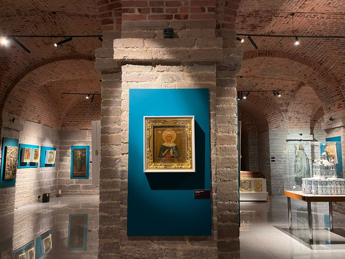 Вы посетите подцерковье Смольного собора — атмосферное пространство со стенами из красного кирпича, где сейчас гостит выставка.