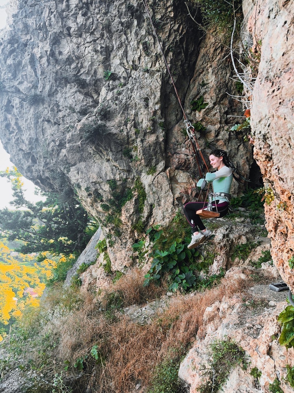 - Виа феррата. После водопада приступим к экстремальной части программы ― отправимся лазать по скалам. Для этого возьмём экипировку, пройдём инструктаж и будем осваивать горный маршрут. Поход по виа феррате безопасный (используем альпинистскую страховку), но захватывающий: мы поднимемся на высоту 50 метров, будем останавливаться на обзорных площадках с невероятным видом на просторы Имеретии и даже покачаемся на качелях на высоте птичьего полёта.