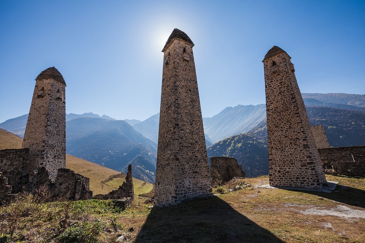 - Башенный комплекс Эрзи — вы увидите несколько десятков боевых и жилых башен 12 века. Раскроете секрет их прочности и услышите о развитии башенной архитектуры в Ингушетии.