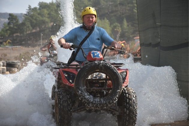 • Управлять квадроциклом могут только гости старше 17 лет. Дети 16 лет и младше управлять не могут, но могут сидеть рядом с оплачивающим водителем.