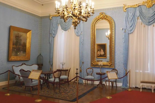Почти все экспозиции расположенного в здании дворца музея посвящены императрице Елизавете и тому времени: старинные костюмы, предметы королевского быта, великолепные полотна и гобелены – все здесь дышит историей, и все сохранилось в прекрасном состоянии.