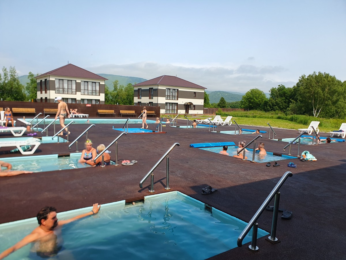 Завершим день на одной из баз отдыха (Паратунка или Озерки). Благодаря тому, что посёлки со всех сторон окружены сопками и защищены от ветра, а из недр земли поступает природная горячая вода, отдыхать здесь можно круглый год.
