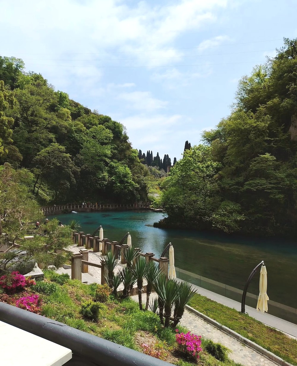 - Озеро Рица — главная природная жемчужина Абхазии на высоте 950 м. Цвет воды меняется от изумрудного до лазурного