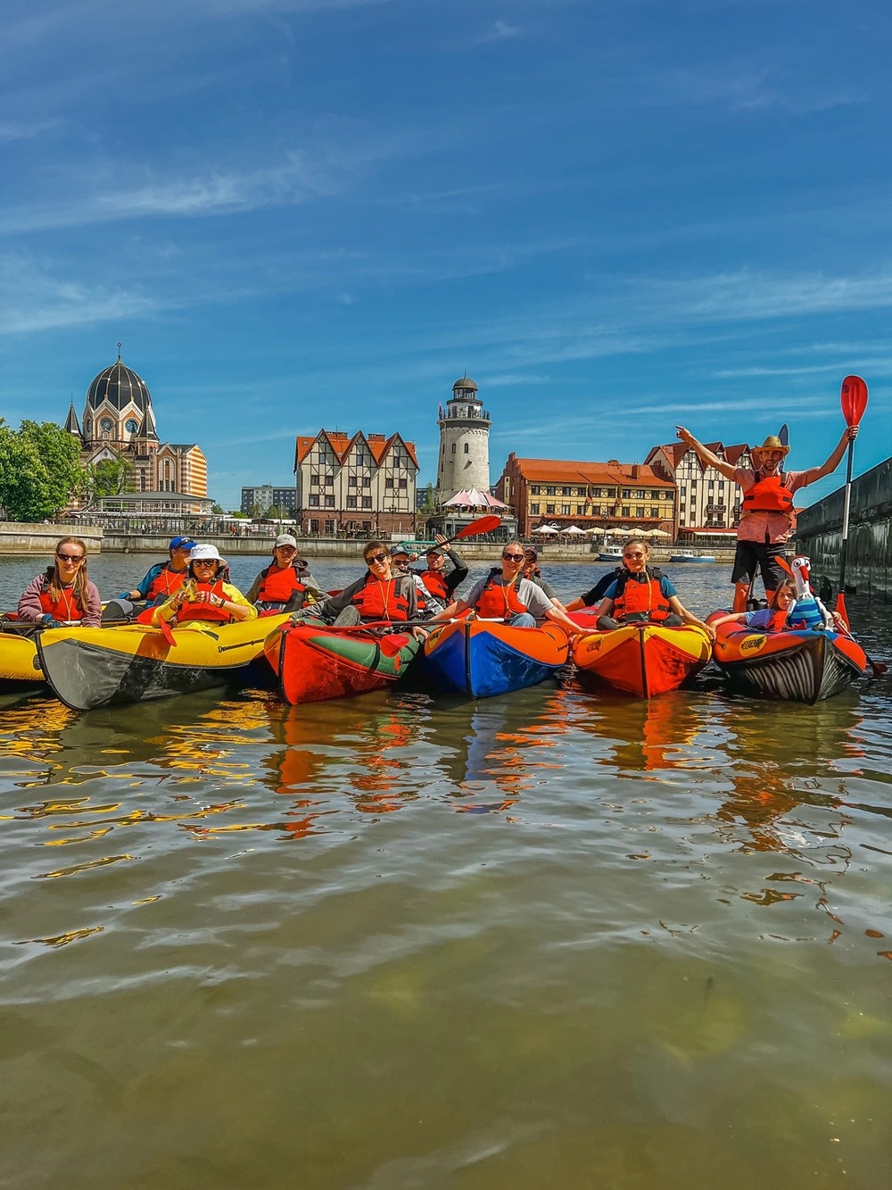 На байдарках мы зайдем вглубь Калининградского порта — сюда не отвезет туристический автобус! Вы прикоснетесь к кораблям-великанам, понаблюдаете за бурной работой порта, полюбуетесь Рыбной деревней и зеленым островом Канта. А мы обеспечим комфорт и сделаем для вас яркие фотографии.