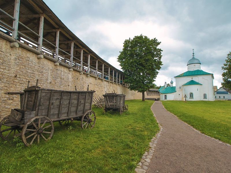 В XIV веке поселение перенесли на новое место, где была построена сохранившаяся до наших дней Изборская крепость, — прекрасный образец древнерусского зодчества. Прогулка по крепости, подъем на крепостные стены, осмотр потайных ходов помогут вам понять, как изобретательны были наши предки в попытках защитить свой дом. Впрочем, выбора в Средние века у них не было, ведь крепость находилась на границе с немецкой Ливонией и постоянно подвергалась нападениям.