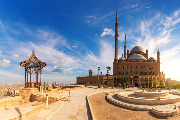 После нас ждет Цитадель Саладина — крепость Xll века, защита от крестоносцев с изящной мраморной мечетью Мухамеда Али. Ее еще называют Алебастровая мечеть. Панорамный вид со стен цитадели завораживает множеством красивых мечетей старого города. В Цитадели также есть обмундирование и оружие времен многовековой истории Египта, Национальный военный музей, Музей полиции и еще несколько музеев.