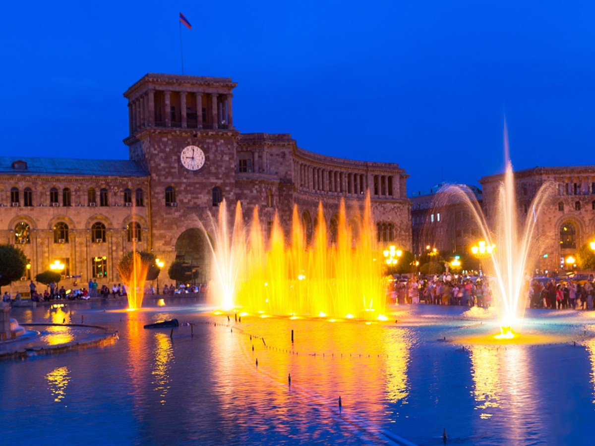 - Площадь Республики — главная площадь Армении, где регулярно проходят концерты и парады. Ещё она известна поющими фонтанами, у которых по вечерам собираются местные и гости города — слушают красивую музыку и любуются игрой разноцветных потоков воды.