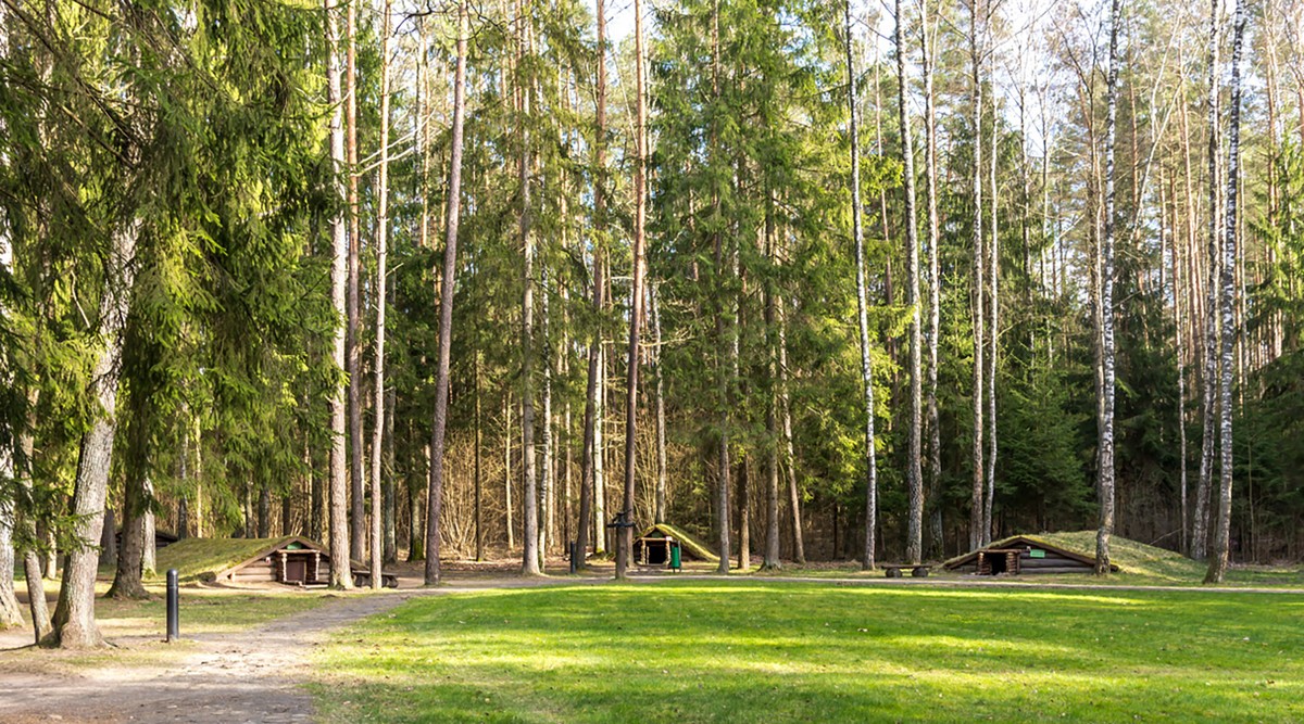В партизанском лагере представлены землянки санитарной части, штабная, караульная, лесная школа, оружейная мастерская и другие. Все объекты воссозданы по архивным документам.