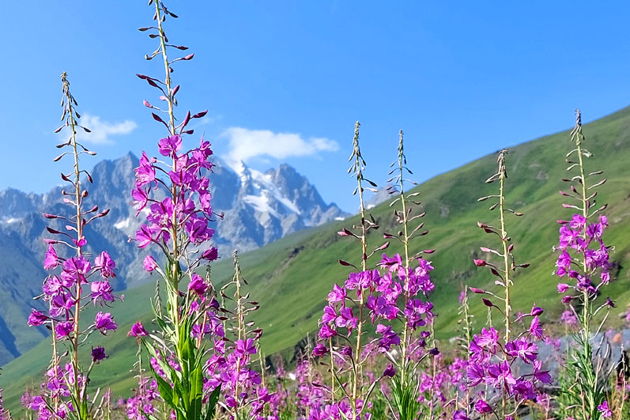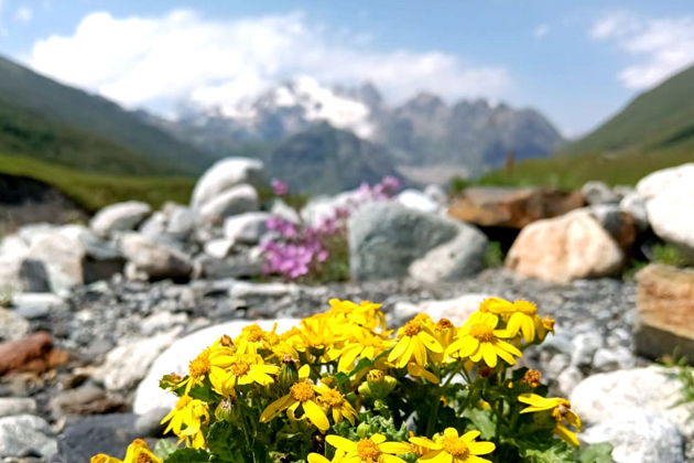 На машине повышенной проходимости сегодня едем поближе к Главному Кавказскому хребту, чтобы полюбоваться на снежные вершины и совершить треккинг к леднику Уштулу.