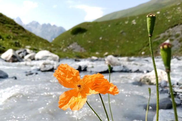В ущелье пройдем до точки, откуда виден ледник Нахашбита. В этом месте сделаем большой привал, обед и отправимся обратно.