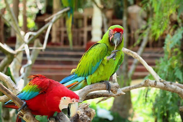 Большинство пернатых находится в вольерах. Возле каждого вольера имеется информация о том, кто в нем живет. Некоторые птицы свободно перемещаются по всему парку. На главной площадке всех посетителей встречают яркие попугаи, которые абсолютно не боятся людей и с удовольствием садятся на руки и головы. Они настоящие фотомодели и умеют отлично позировать, поэтому вы сможете сфотографироваться и пообщаться с ними.Все птицы здесь невероятно красивы. К сожалению, многие из них в естественной среде встречаются очень редко. Большая часть обитателей парка занесена в Красную книгу, но здесь вы сможете увидеть их вблизи. Сейчас я расскажу вам о самых интересных птицах, которые содержатся в парке.