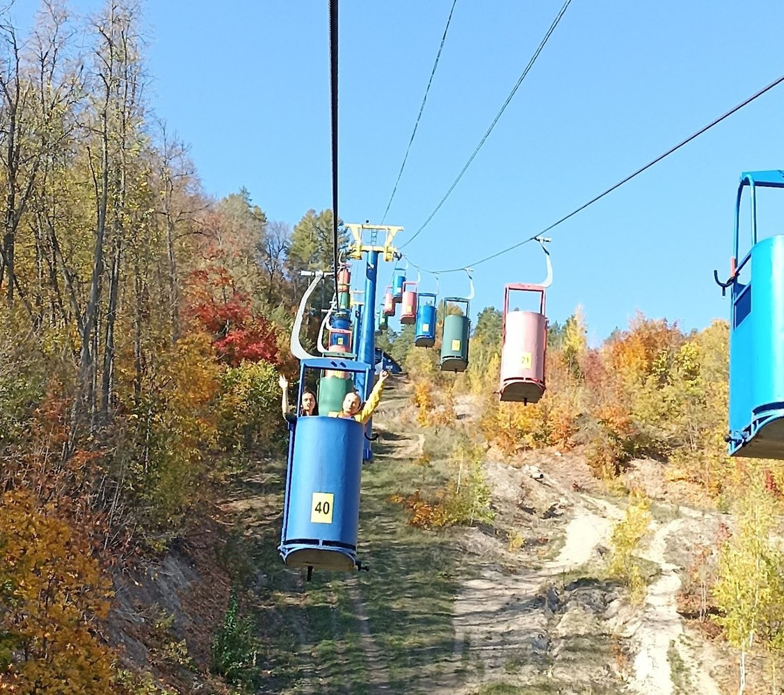 Заедем на горнолыжный центр в хвойном лесу на красивом склоне реки Караидель. С мая по октябрь можно спуститься по канатной дороге к самой реке.