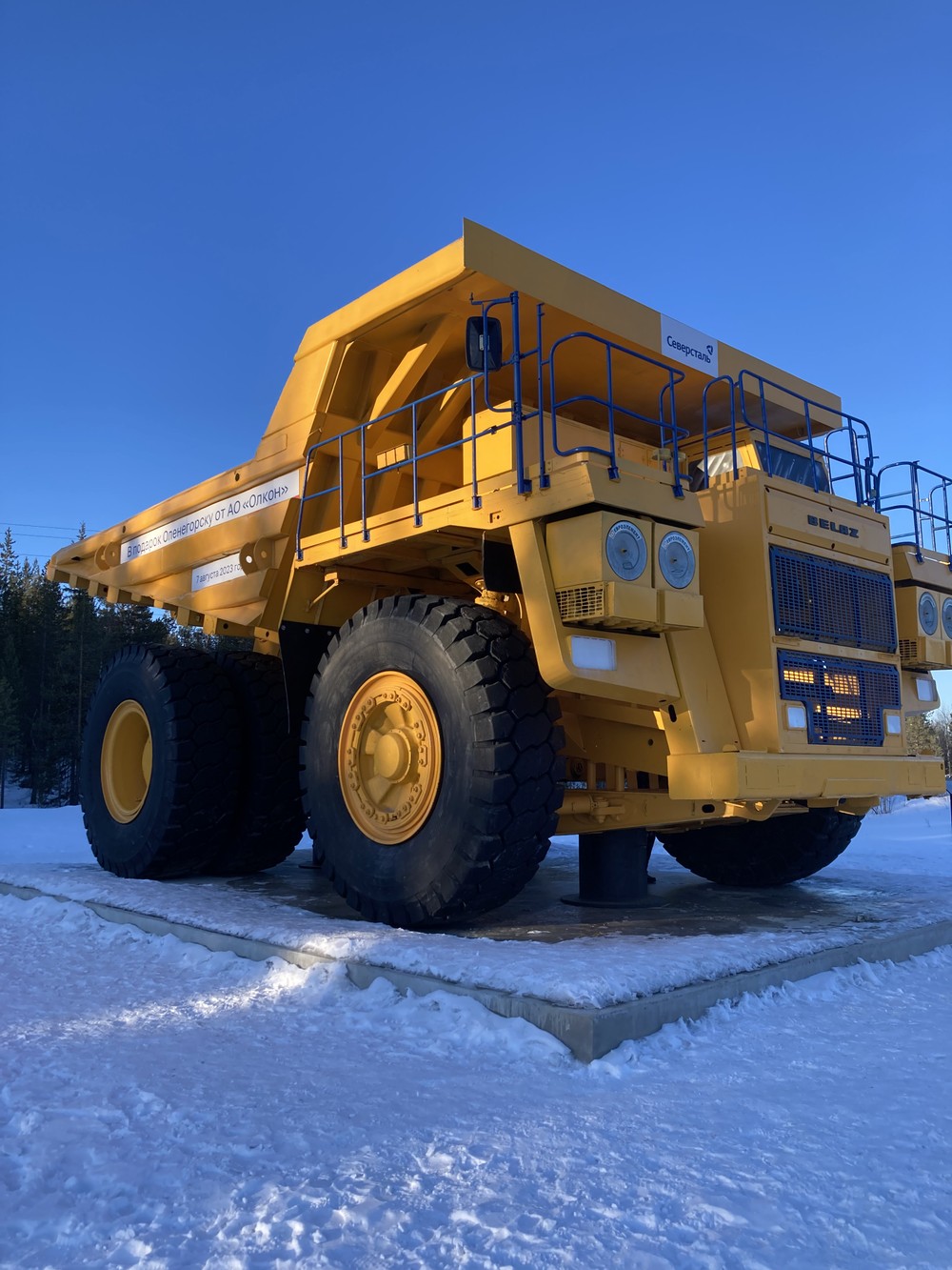 Направляясь в Кировск, мы сделаем остановку в городе Оленегорске, где вы сможете запечатлеть себя рядом с карьерным самосвалом высотой в 2 человеческих роста.