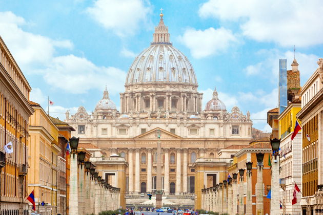 Исследуйте базилику Святого Петра вместе с куполом высотой 136 метров. Сначала поднимитесь наверх, полюбуйтесь мозаиками и видами площади Святого Петра и садов Ватикана. С высоты вы увидите и другие символы города — Колизей, Пантеон и замок Святого Ангела.