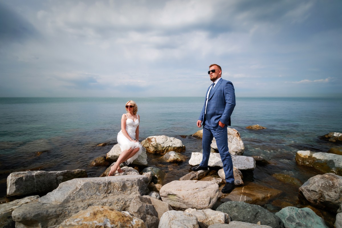 - Пастельные или нейтральные цвета отлично сочетаются с морским фоном и создают мягкий и романтичный вид