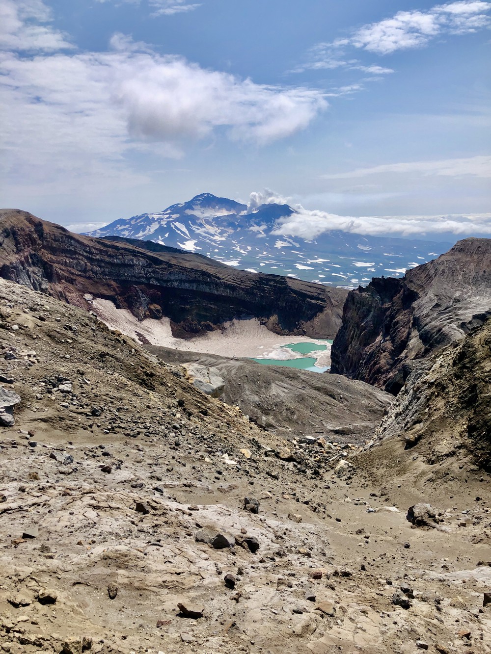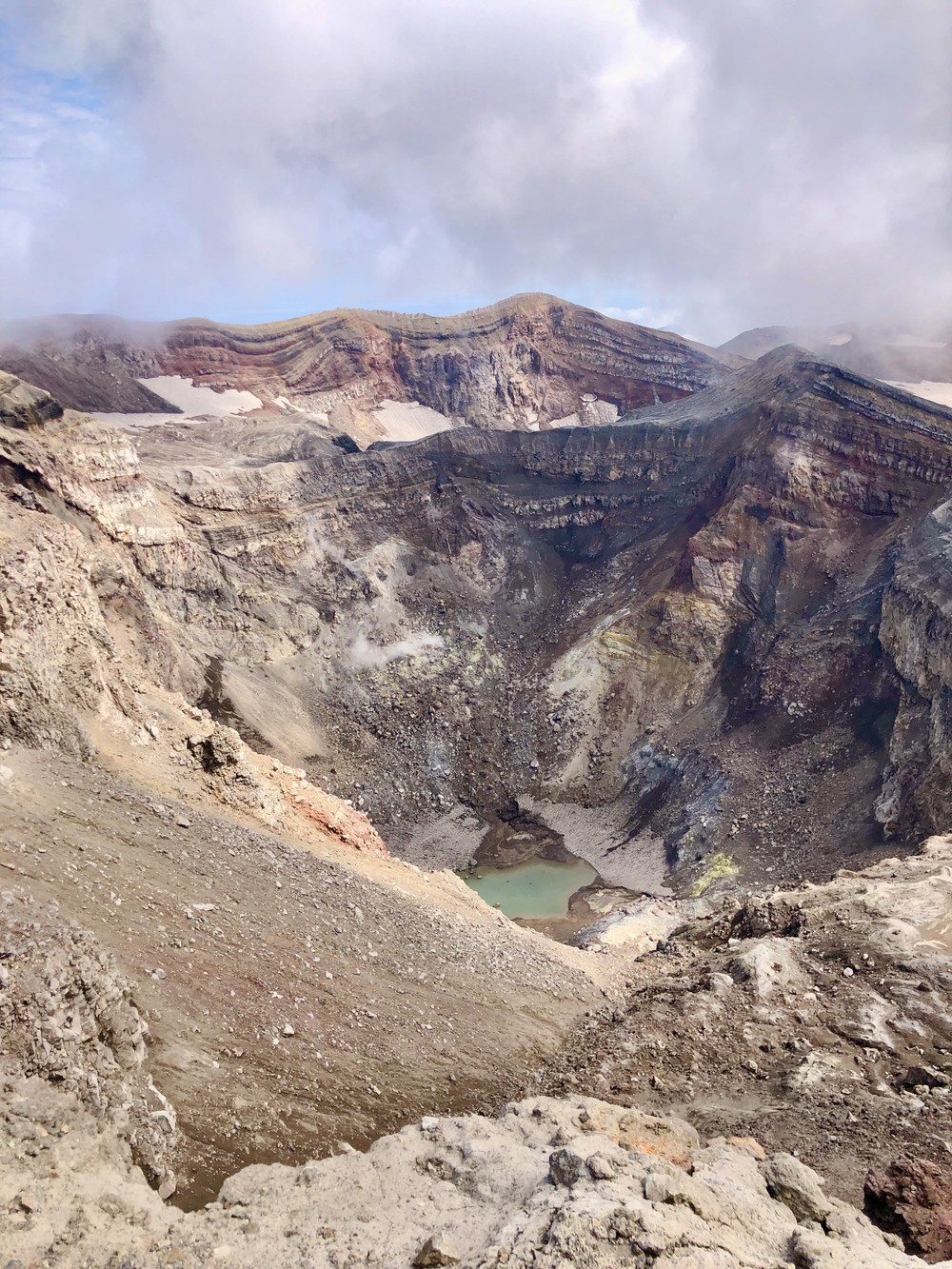 На вершине мы устроим пикник, а затем отправимся исследовать кратеры вулкана Горелый, в одном из которых раскинулось великолепное бирюзовое озеро, насыщенное серой. После спуска вас ждёт вкусный обед.