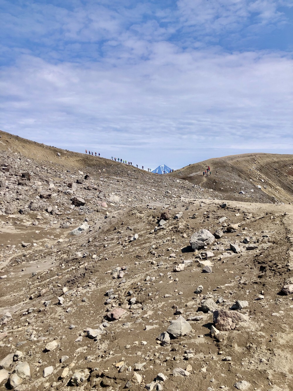 Затем вас ждёт 2,5-часовое восхождение. Вы полюбуетесь застывшими лавовыми потоками и вулканическими бомбами. Вид с каждым метром подъёма будет впечатлять всё больше! С высоты откроется панорама Вилючинского и Мутновского вулканов, на горизонте появится полоска Тихого океана и гряды домашних вулканов.