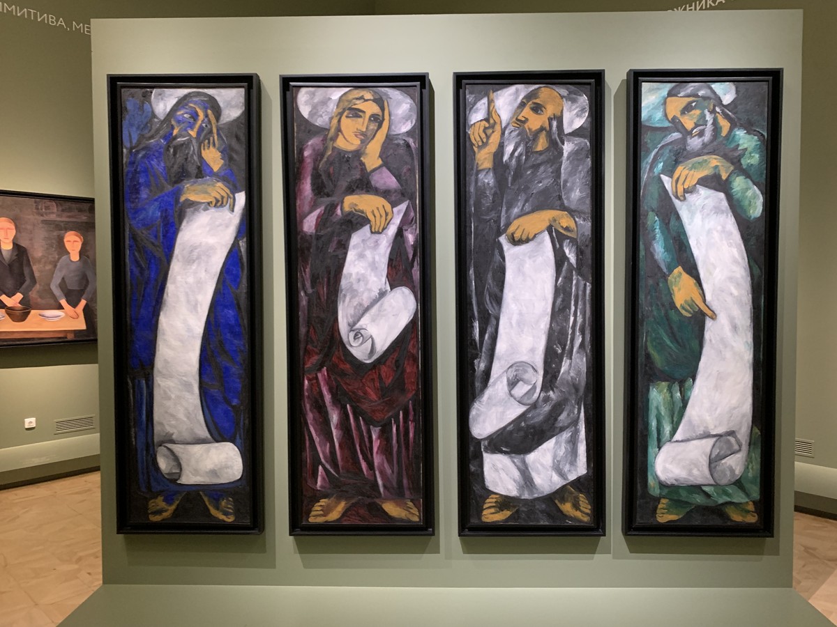 Залы примитивизма и сезаннизма: вдохновлённые народным искусством, детским творчеством, искусством древних цивилизаций, художники искали новое, острое выражение жизни. Вспомним выставки «Бубновый валет» и «Ослиный хвост», открытие творчества Нико Пиросмани.