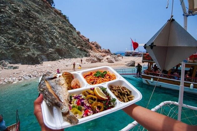 После волшебного заката вас ждет вкусный ужин на борту и ещё одна остановка — в бухте Аксэки. Это место знаменито своей загадочной Пещерой любви и освежающей водой.