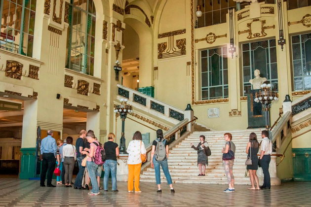 Экскурсия по Витебскому вокзалу раскрывает его архитектурные и технические секреты: от великокняжеских покоев и механизмов часовой башни до уникальных ферм дебаркадера. Вы узнаете об истории железных дорог России, происхождении слова «вокзал» и инженерных решениях, позволяющих поездам прибывать на второй этаж. Это путешествие в эпоху модерна с доступом в закрытые помещения.