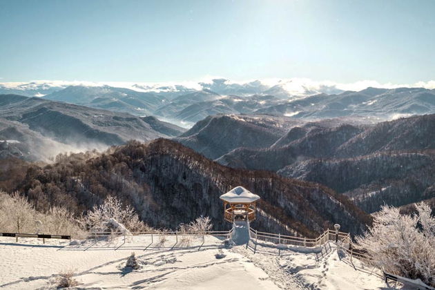 Лестница Мэздах. Ведет к смотровой площадке на высоте около 300 метров, состоит из 19-ти лестничных пролётов, включающих в себя 686 ступеней. Это отличное место для антуражных фотографий. Лесо-парковая зона, расположенная на вершине хребта Нагиеж-Уаш — это одно из любимых мест прогулки горожан. Здесь красиво в любое время года — весной лес пестрит цветами и молодой листвой, а осенью та же листва начинает окрашиваться в различные оттенки красного и желтого цвета, а зимой здесь настоящая зимняя сказка. Смотровая площадка на скале «Утюг». Скала «Утюг» знаменита тем, что здесь находится отличная смотровая площадка на плато Лаго-Наки. Туристы часто берут термос с чаем и останавливаются здесь полюбоваться красивыми видами. Скала является популярным местом для фотосессий у туристов. Здесь красиво в любое время года. Смотровая площадка доступна для посещения людей разного возраста. Лыжная база «Альпина парк». Это место, где вы можете покататься на санках, снегоходах, квадроциклах и лошадях. Есть необходимый прокат спортивного инвентаря. Есть бугельный подъемник с перепадом высот 100-150 метров. Здесь же расположена снегоходная база, предлагающая путешествия по подготовленным трассам на утилитарных снегоходах. Желающие могут покататься на лошадях, предлагаются разные маршруты. На территории есть небольшое кафе и есть открытые беседки, где можно устроить пикник на природе. Возьмите с собой бутерброды, аппетит на природе всегда отличный, а отдых с чашечкой кофе или чая даст энергию на дальнейшее наше путешествие. Туркомплекс «Горное настроение». Находится на одной из полян в районе хребта Азиш-Тау (высота 1320 метров над уровнем моря), с которой открывается вид на Лагонакское нагорье и заснеженные трехтысячники Главного Кавказского хребта. До населенной местности (ст. Даховская) приблизительно 10 км. До автодороги 500 м, поэтому в туристическом комплексе «Горное Настроение» тихо и свежий, чистый горный воздух. Отдельное внимание заслуживает «парящая» смотровая площадка, которая открывает вид на снежные вершины и высокогорные луга Кавказского заповедника.
