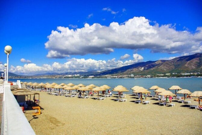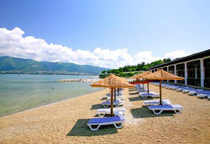 Fans of swimming in warm sea water will be satisfied with the location of the hotel “Gelendzhik-Park”. From the hotel to the nearest beach is not more than 100 m. This landscaped pebble plot belongs to the boarding house “Caucasus”. A little further from the hotel “Gelendzhik-Park”, 350 m, there is another beach belonging to the “Red Talka” – a famous sanatorium. The strip is covered with sand mixed with small pebbles. Both beaches are available for guests of the hotel “Gelendzhik-Park”.
